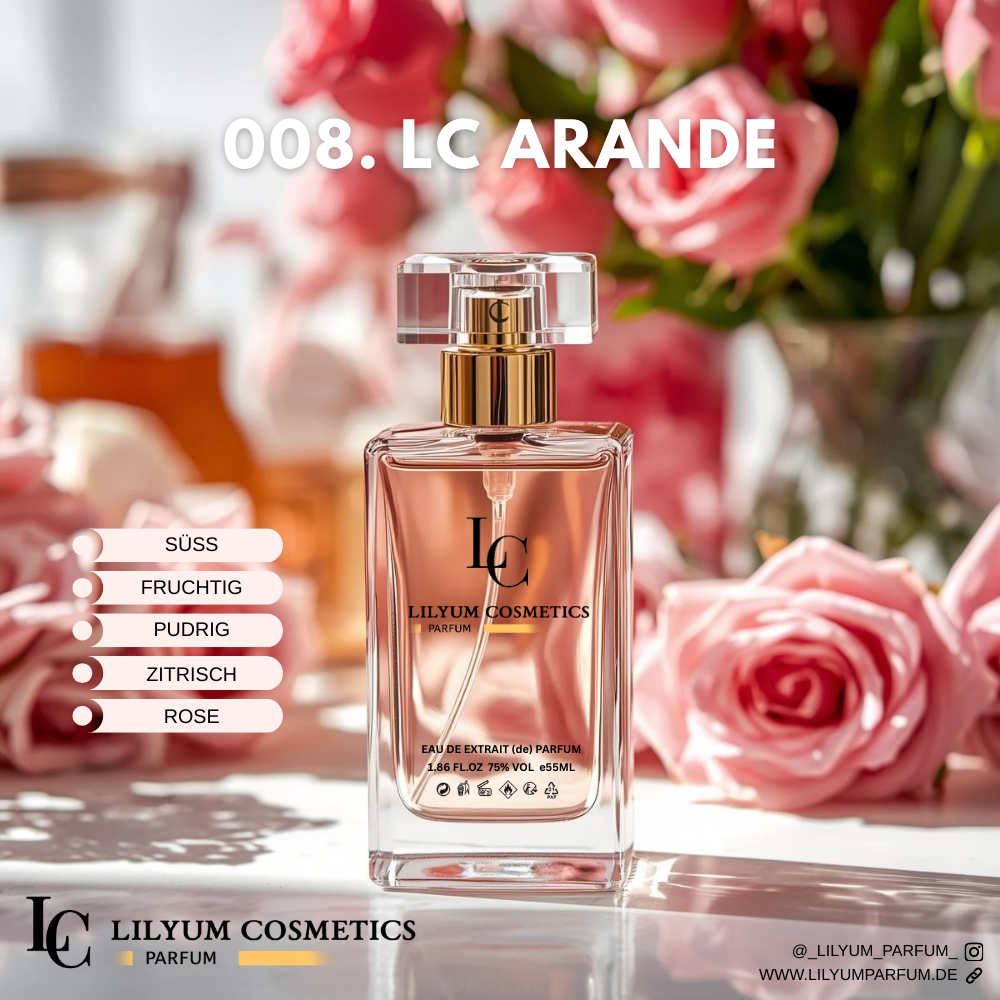 Ein verspielter Auftakt aus saftiger Himbeere, zarter Birne und spritziger Grapefruit wirkt fruchtig und lebendig. Im Herzen entfalten sich cremige Vanilleorchidee, elegante Rose und frisches Maiglöckchen zu einer weichen, femininen Floralik. Marshmallow, Moschus und holzige Noten bilden eine süß-warme Basis mit sanfter, anschmiegsamer Tiefe.